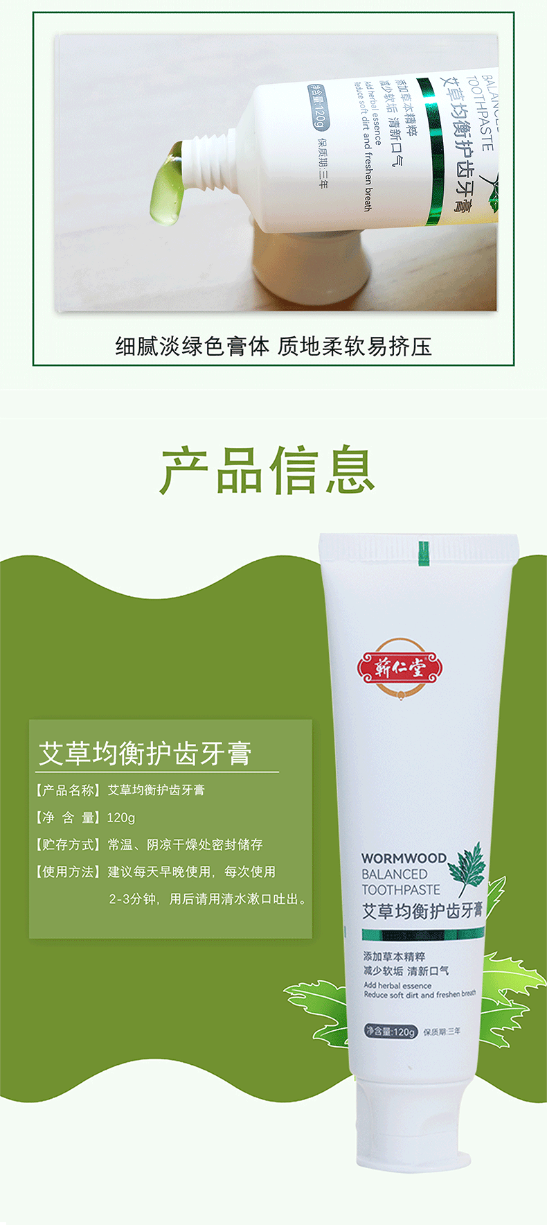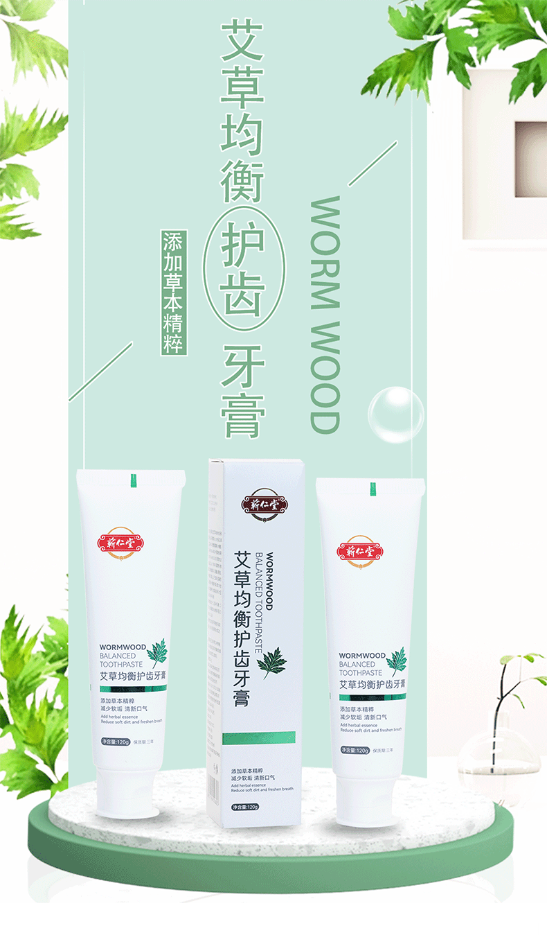 蕲仁堂艾草均衡护齿牙膏 120g/支 牙膏艾草牙清火保护 牙膏艾草清新口腔