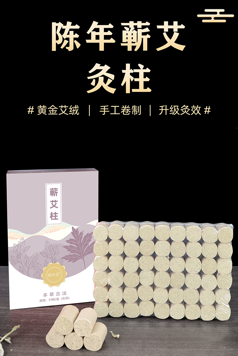 蕲怡堂蕲艾柱 54粒/盒 艾草纯艾绒家用正品 艾条艾叶艾柱艾绒石磨