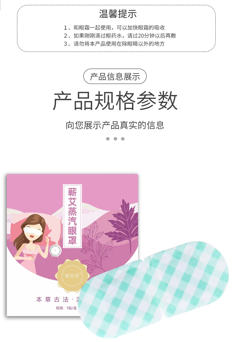 蕲怡堂蒸气眼罩 5贴/盒 神器贴罩眼罩蒸汽 眼罩包装小袋蒸气独立