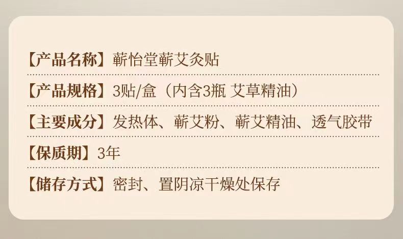 蕲怡堂蕲艾灸贴 3贴/盒 艾灸贴自发热全身热敷 艾草贴热贴暖贴热敷