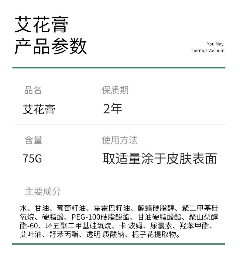 艾花膏 75g/盒 艾草精华 植物萃取 按摩精油 驱寒养肤